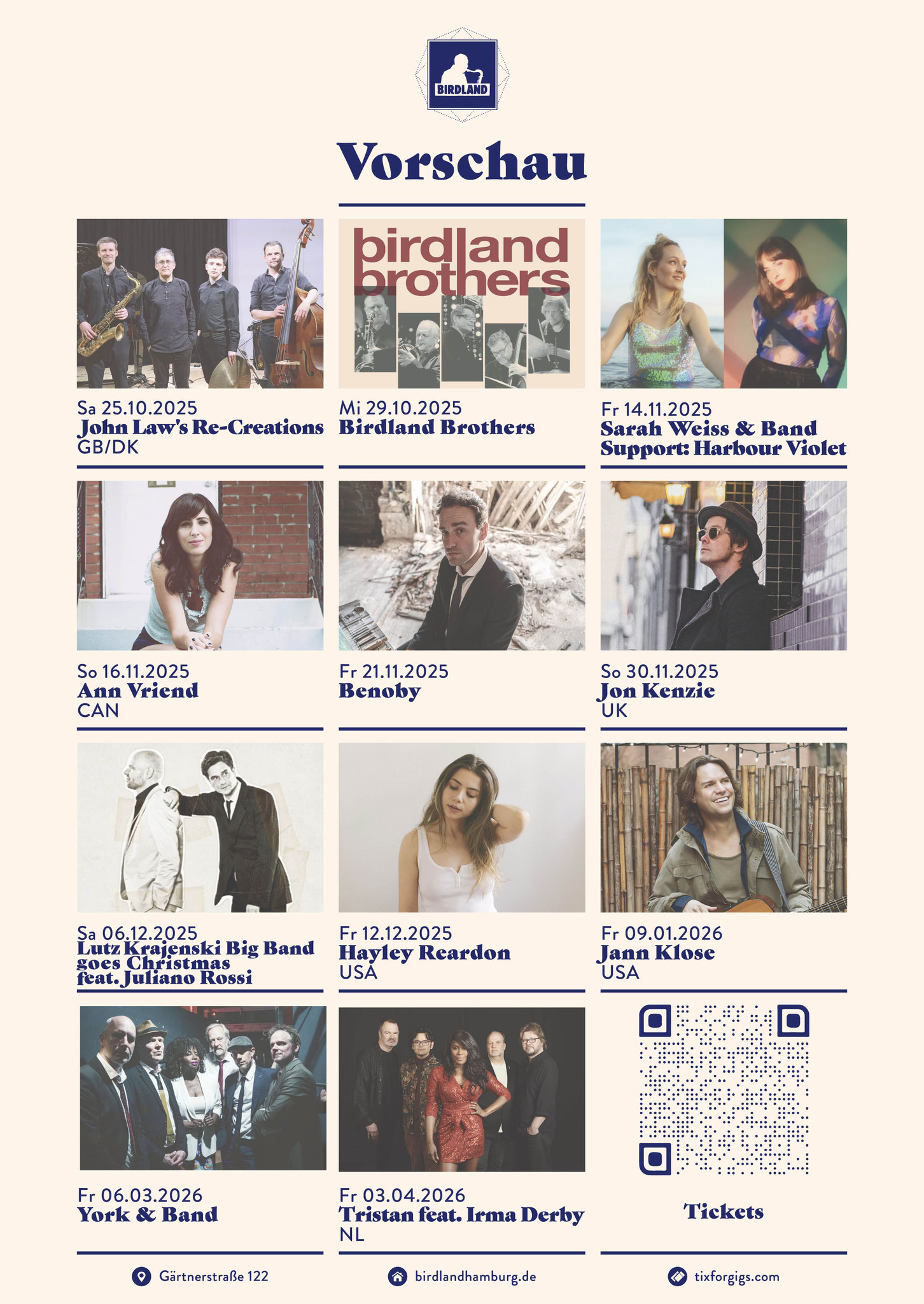 Eure Tickets für die Konzerte & Veranstaltungen bekommt Ihr direkt bei Tixforgigs.de und Hard Tickets sind bei offenem Veranstaltungsbetrieb im Birdland am